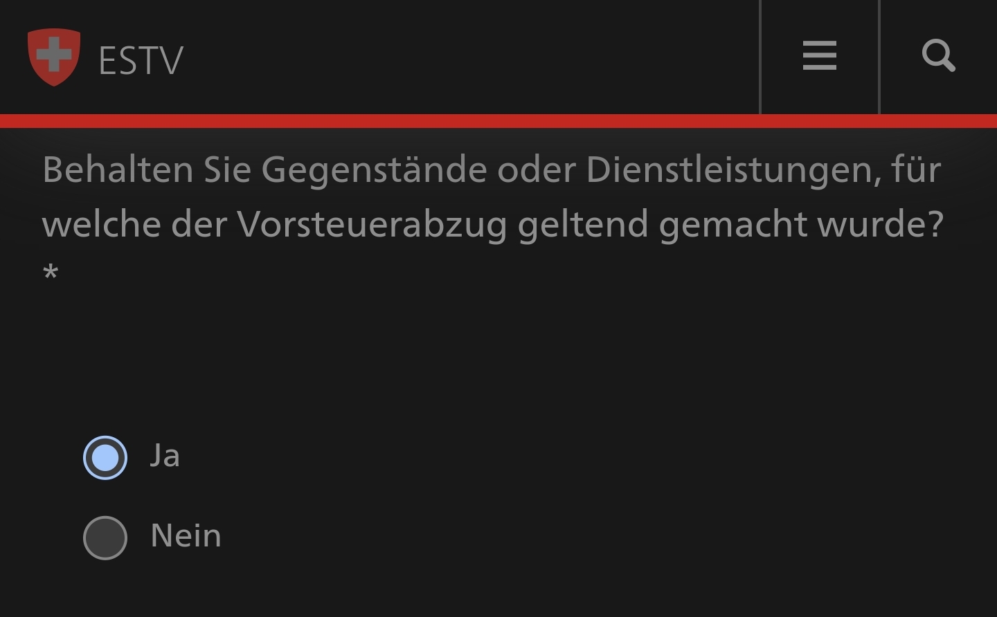 Dementsprechend kreuze ich die Frage „„Behalten Sie Gegenstände oder Dienstleistungen, für welche der Vorsteuerabzug geltend gemacht wurde? *““ mit JA an.
